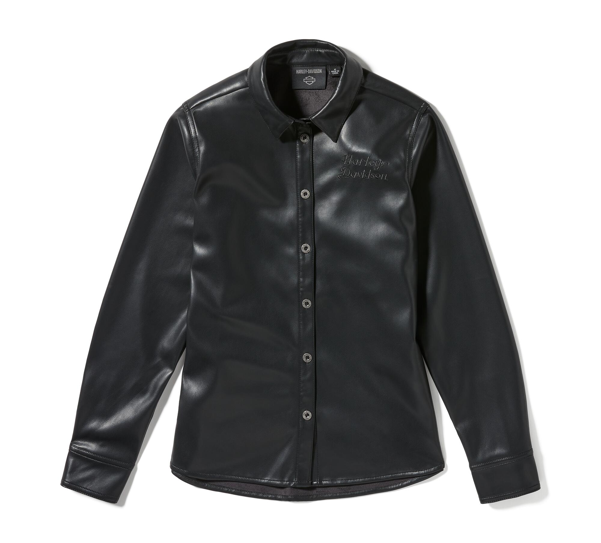 Questa camicia incarna in pieno lo stile del motociclista Harley-Davidson.Questa camicia a maniche lunghe da donna è munita di orlo ricurvo con spacchetti laterali per maggiore mobilità, e di colletto snap-down che non svolazza sotto gli indumenti tecnici. È rifinita con un ricamo tono su tono sul davanti, mentre sulla schiena campeggia l’immagine del serpente che incontra la rosa con un pugnale!