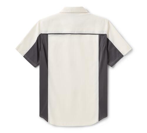 Look cool e freschezza garantita: entrambe le cose sono possibili con la nostra camicia ventilata HD® TECH Bar & Shield. Realizzata in poliestere ripstop e mesh, questa camicia da uomo a maniche corte con bottoni allontana l’umidità ed è dotata di aperture per la ventilazione che aiutano a gestire la sudorazione. Presenta tasche sul petto con cerniera per riporre gli oggetti essenziali e un colletto con bottoni automatici nascosti che rimane al suo posto sotto l’abbigliamento da moto. La schiena è pulita e presenta la nostra iconica grafica ricamata sul davanti per un look HD senza tempo.