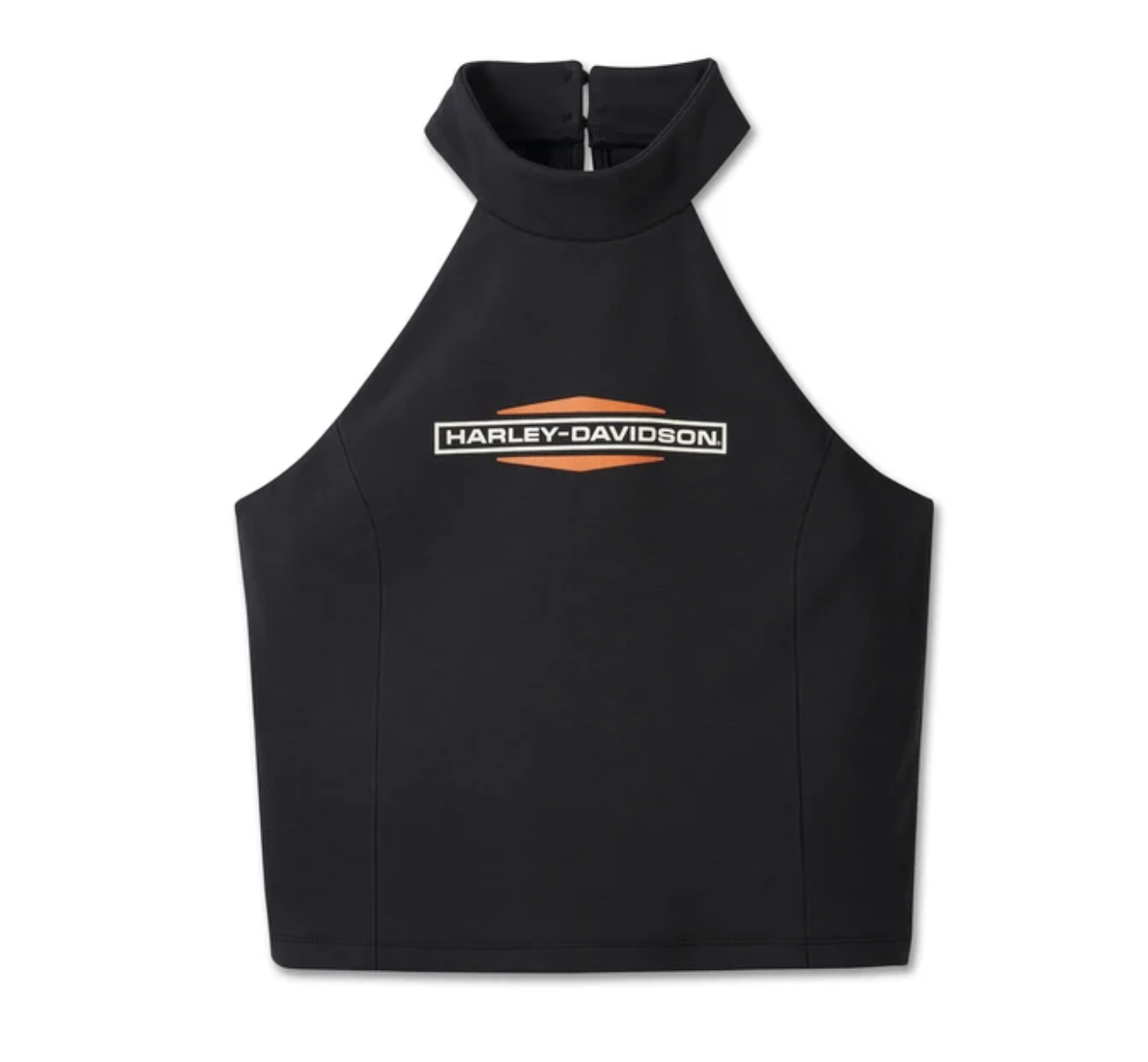 Il top halter Bar & Shield in edizione limitata si caratterizza per il taglio valorizzante e il branding tipico della marca di motociclette più celebre al mondo. La vestibilità aderente di questo top corto è garantita dal tessuto interlock di cotone inframmezzato da fibre di spandex, che ne aumentano l’elasticità. Le cuciture a bustino e il collo a lupetto con asola e bottone completano ne completano lo stile. La schiena rimane pulita per lasciare la scena a uno dei nostri loghi più popolari sul davanti.