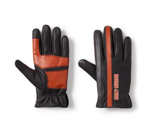 Il classico stile colorblock riceve un upgrade in chiave H-D nei guanti in pelle traforata Legacy. Realizzati in pelle di agnello morbidissima, questi guanti da uomo compatibili con touchscreen sono dotati di polso elastico e sezioni perforate per favorire la ventilazione. I guanti sono rifiniti con una serie di abbellimenti che strizzano l’occhio alla nostra tradizione nelle gare di flat track.