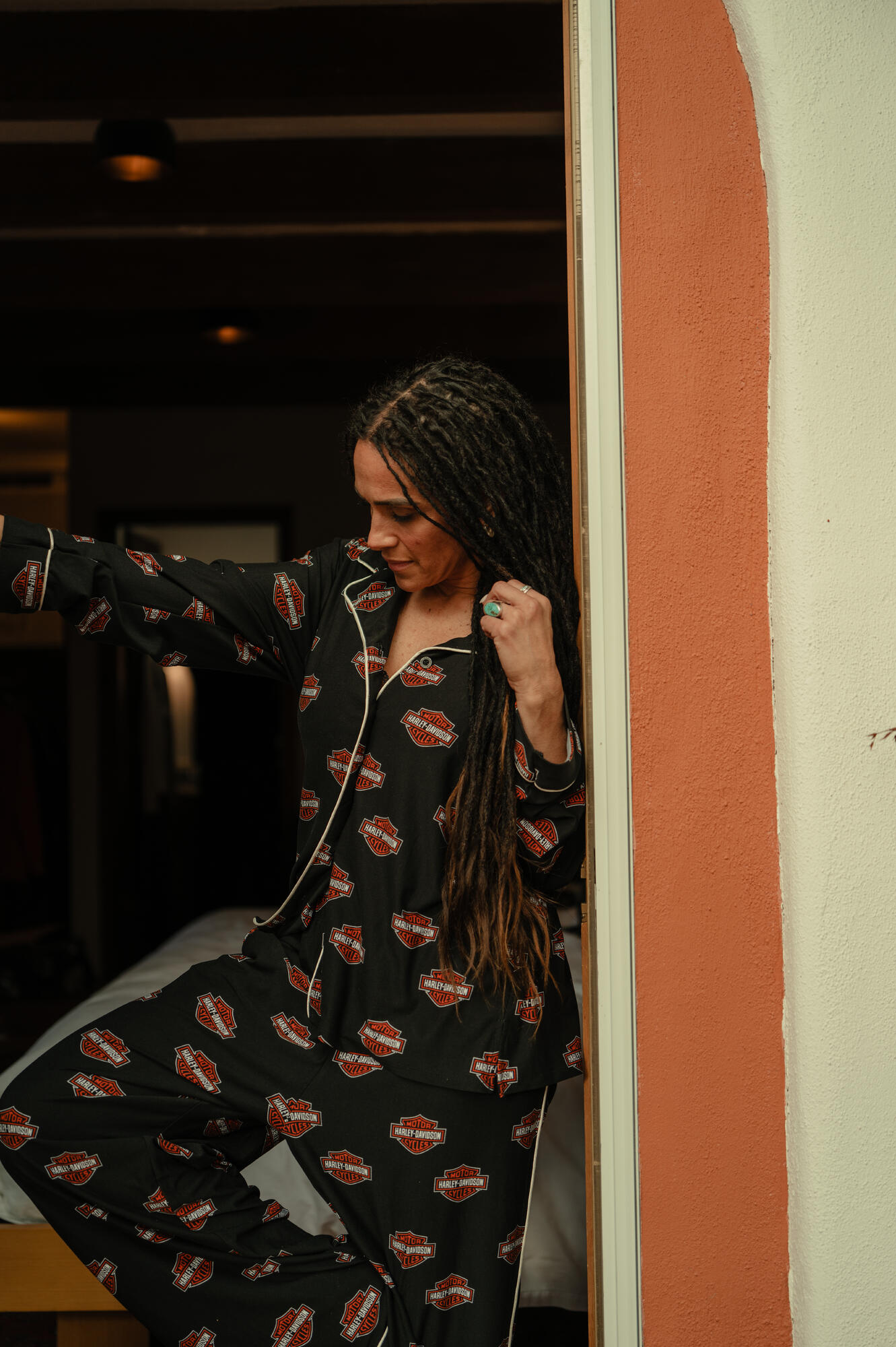 Tempo uggioso, voglia di uscire pari a zero? Può succedere anche ai motociclisti più impavidi. Perché allora non rimanere in casa mantenendo lo stile inconfondibile del Nostro marchio? Fatelo con questo Set pigiama giacca e pantalone!