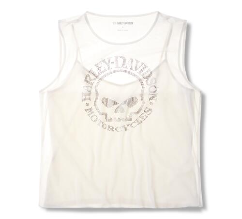 Lo stile a strati trasparenti assume un tocco scintillante nel nostro top Willie G™ Skull Bling Mesh. Lo strato esterno in rete e la canotta interna in jersey rimovibile sono tagliati più corti per una silhouette che valorizza la figura. Insieme creano un look raffinato e impeccabile, ma possono essere indossati anche separatamente, insieme ad altri capi del tuo guardaroba. Lo strato in rete è caratterizzato da una splendida grafica in strass che mette in risalto l’iconico teschio Willie G.